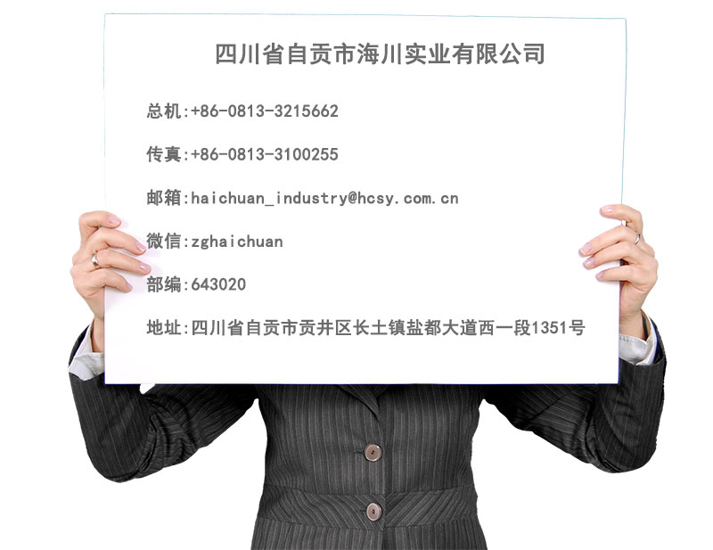 地址:四川省自貢市貢井區(qū)長土鎮(zhèn)鹽都大道西一段1351號郵編:643020總機:+86-0813-3215662傳真:+86-0813-3100255郵箱:haichuan_industry@hcsy.com.cn